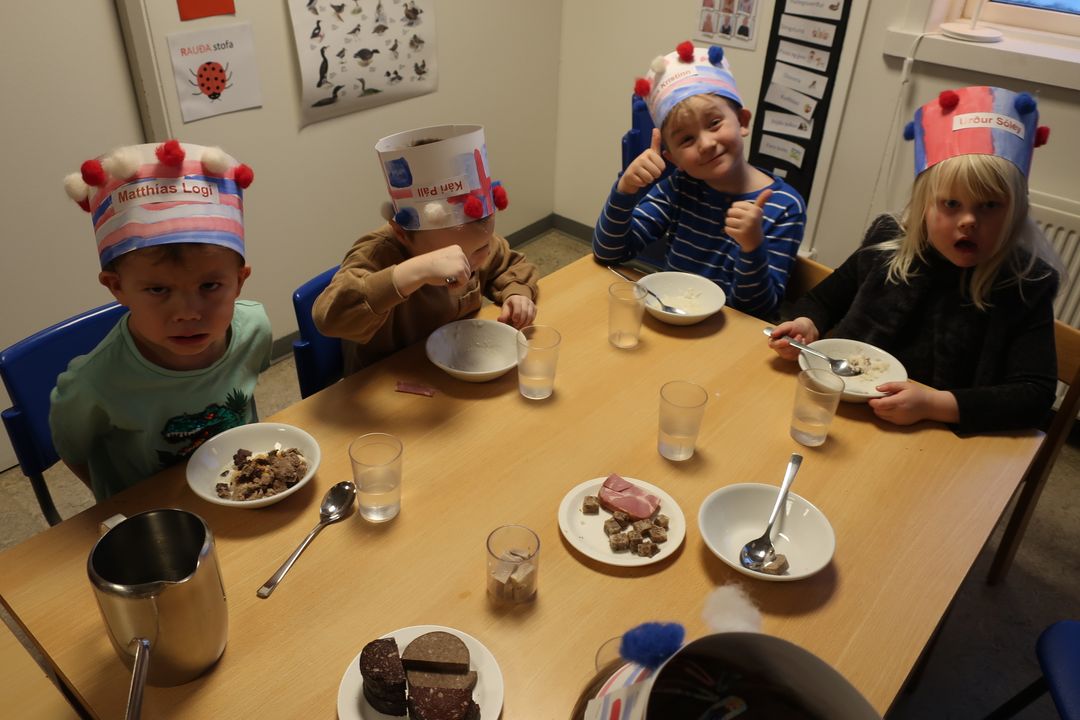 Þorrinn og þorrablót Furugrundar átti sér svo einnig sinn stað og tíma. Börnin undirbjuggu Furugrundar blótið með því að búa til þorrakórónur sem svo skreyttu hvert höfuð á sjálfan þorrablótsdaginn. Við gæddum okkur á grjónagraut ásamt ýmsum bragðdæmum af dýrindis þorramat. Ekkert þorrablót er án söngs og var sungið við raust lagið Þorraþrællinn. Börnin skemmtu sér konunglega að smakka þorramatinn sem þeim hugnaðist misvel.