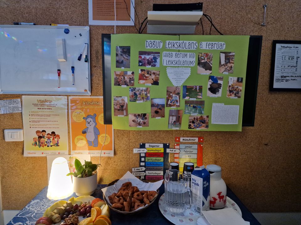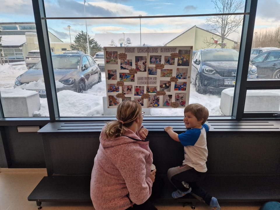 Þann 6. febrúar á degi leikskólans þá buðum við foreldrum í kaffi og börnin fræddu foreldra sína um það sem þau væru að gera í leikskólanum.